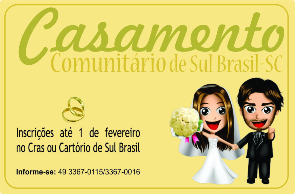 Com iniciativa da Secretaria de Assistência Social e Escrivania de Paz do Município de Sul Brasil, se realizará, em breve, o Casamento Comunitário. As inscrições estão […]